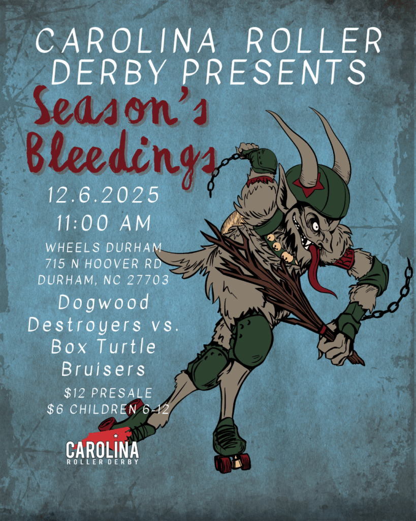 Naughty or nice, everyone gets checked this holiday season! Join us for Season’s Bleedings, where your favorite derby devils hit the track for an afternoon of hard hits, holiday mayhem, and Krampus-approved chaos. Cheer on your favorite CRD home teams — the bold Box Turtle Bruisers and the fierce Dogwood Destroyers.